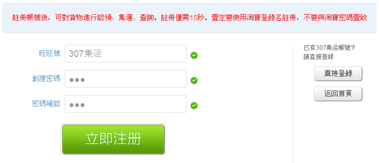 請注意:一定要使用你的淘寶登錄名註冊,方便認領您的貨物